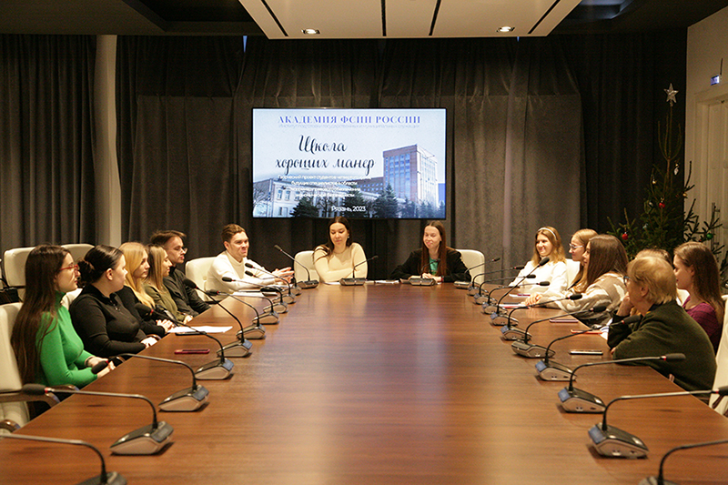 27 декабря в Рязанской областной научной библиотеке имени Горького состоялась презентация сборника статей и заметок, подготовленного к печати студентами Института подготовки государственных и муниципальных служащих Академии ФСИН России, обучающимися по специальности экономическая безопасность. Коллективный труд студентов под названием "Школа хороших манер" обращен к тем, кто интересуется профессиональной этикой и этикетом. Его содержание посвящено проблемам морали и нравственности, как в области профессии, так и обыденной жизни. Каждый из авторов поставил на обсуждение самые актуальные с его точки зрения проблемы: такт и деликатность в соцсетях, самообладание и профессия, о спортивной этике и робоэтике, о полиции нравов, об инклюзивном этикете и другие. Выступления сопровождались содержательными видеоиллюстрациями. Руководитель творческого проекта доцент кафедры философии и истории кандидат философских наук Демко Тамара Николаевна. Преподаватель считает, что формат публицистического творчества студентов в освоении гуманитарного знания повышает интерес к предмету и усиливает эффект его усвоения. На презентации присутствовал и принял участие в дискуссии преподаватель Рязанской православной духовной семинарии магистр истории Холопов С.Г. Студенты и преподаватели выразили сердечную благодарность дирекции библиотеки и ее сотрудникам за предоставленную возможность провести занятие в творческой атмосфере. Мысли, прозвучавшие на презентации, убедительно свидетельствуют о том, что будущие сотрудники правоохранительных органов неравнодушны к проблемам этики и готовы стоять на страже морально-нравственных ценностей общества.