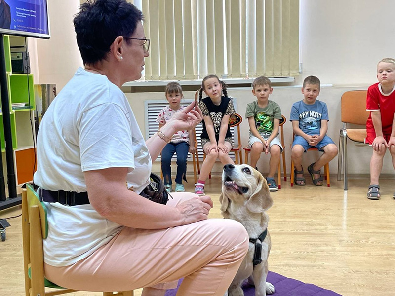 Ребята с интересом слушали о том, как собаки находят спрятанные предметы, используя свой невероятный нюх, и о сложных тренировках, которые они проходят, чтобы достичь такого уровня мастерства.