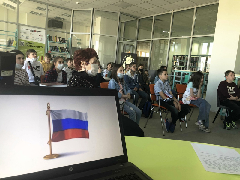 Сегодня гостями читального зала стали дети из летнего лагеря лицея №4. В библиотеке в преддверии Дня России ребята совершили виртуальное историческое путешествие. Организаторы мероприятия продемонстрировали им поэтапное изменение облика официальных символов нашего государства. Посредством мультипликационных фильмов о флаге, гербе и гимне ребята узнали о них много интересных фактов. В финале встречи их ожидала игра «Что? Где? Когда?». Ребята оказались на высоте, ответив на все каверзные вопросы!