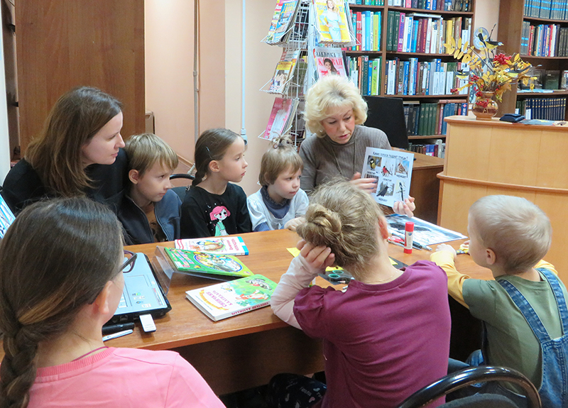 На занятии ребята узнали о том, что с наступлением холодов из лесов в города прилетают зимние птички – синички. Дети познакомились с образом жизни этой удивительной птицы, прослушали на видеозаписи пение большой синицы. Библиотекарь провела для участников клуба беседу по сказке Виталия Бианки «Синичкин календарь», сделав акцент на то, что природа – это единый живой организм, в котором все связано.