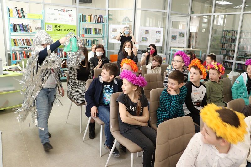 Сегодня второклассникам школы №73 очень повезло: они попали на дивный луг Елены Горшковой. Автор детских сказок в стихах приготовила для ребят костюмированный спектакль «Сказка о том, как колючка стала прекрасным цветком». Луговые цветы, роли которых исполняли сами участники, помогали колючке стать прекрасной розой и просили за нее у Радуги и Царицы цветов. Мораль сей сказки такова: только вместе можно достичь желаемого.