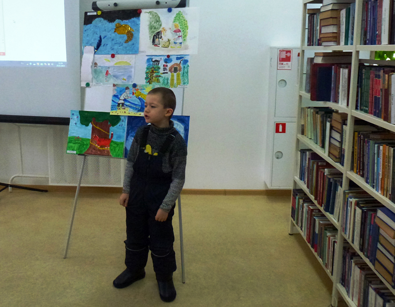 Юным читателям рассказали о детстве будущего поэта, об истории создания сказок. Дети посмотрели отрывки из мультипликационных фильмов, снятых по произведениям Пушкина, с удовольствием разгадывали загадки, участвовали в конкурсах «Петушок мой золотой», «Орешки для белочки». Ребята читали наизусть отрывки из своих любимых сказок, а в завершение мероприятия сделали «ученого кота» из бумаги. Коты у всех получились сказочными.