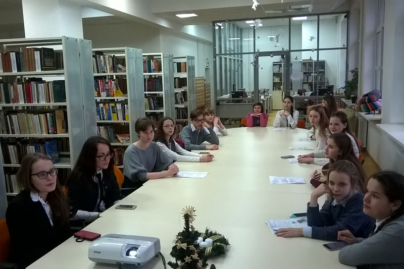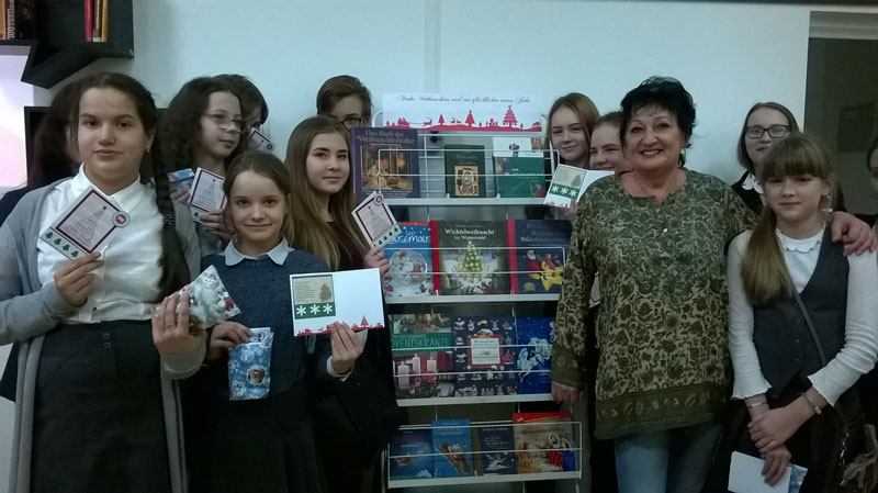 В преддверии зимних праздников гостями библиотеки стали учащиеся МБОУ «Школа №51 “Центр образования”». Ребята, изучающие немецкий язык, приняли участие в библиотечном уроке «Рождество в Германии». Мероприятие было организовано при партнерстве Немецкого культурного центра имени Гете.