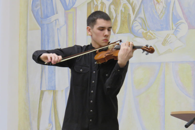 Погрузиться в удивительный мир Худекова помогли материалы видеопрезентации, концертные номера талантливых артистов, исполненные ярко, вдохновенно, с чувством стиля. Перед гостями библиотеки выступили: лауреат международных конкурсов, певица Марина Оводкова, студент музыкального колледжа Иван Алексеенко (скрипка, преподаватель – Елена Коновалова), концертмейстер ДШИ № 1 Елена Балашова, солистка балетной студии МКЦ г. Рязани Елена Куравлева (главный балетмейстер – Олеся Заболотская), артист Рязанского областного музыкального театра Андрей Синецкий (фортепиано).