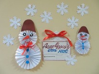 Дети обожают новогодние поделки! Для изготовления гофрированного снеговика наши маленькие читатели использовали белую и цветную бумагу, шелковые ленты, клей-карандаш и ножницы. Для того чтобы снеговик доставил все просьбы к Деду Морозу, дети написали свои заветные желания на праздничных открытках и положили их в волшебный конверт.