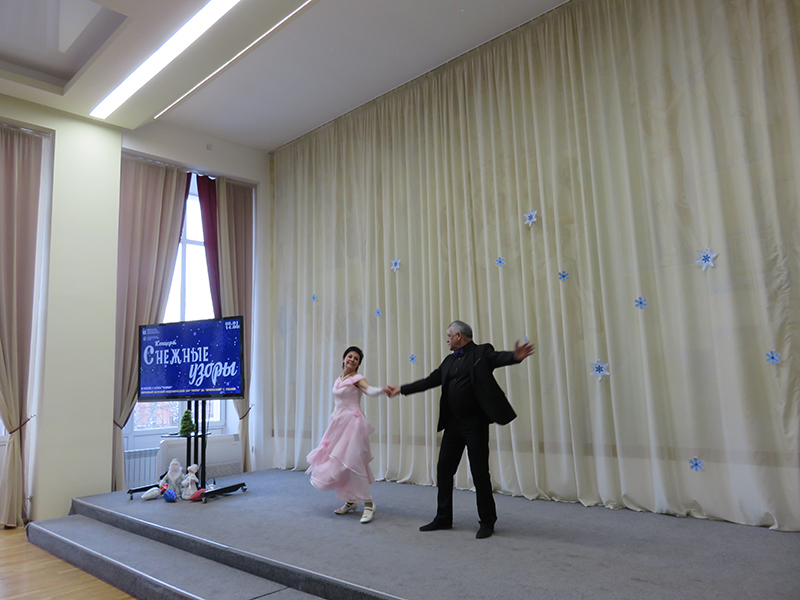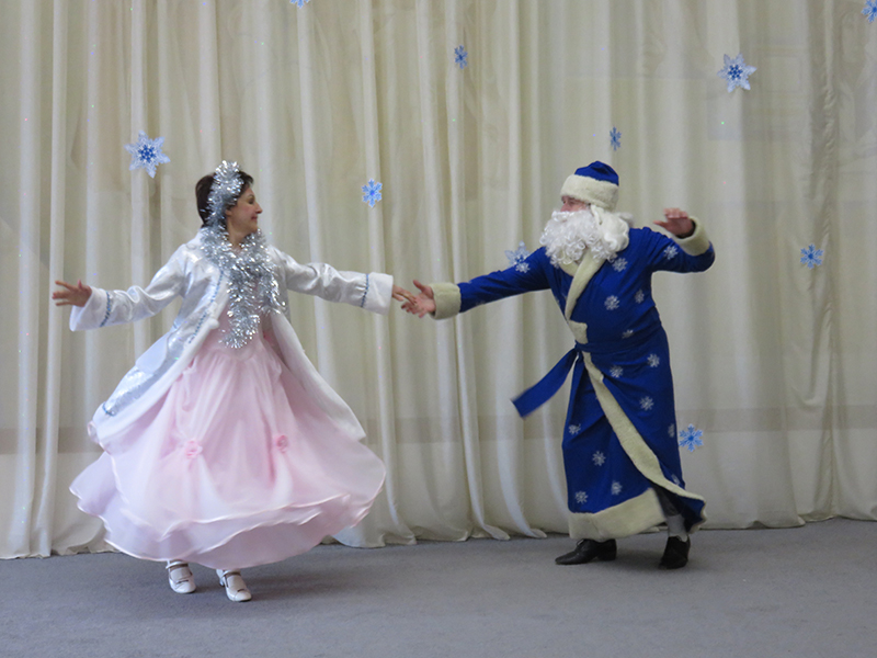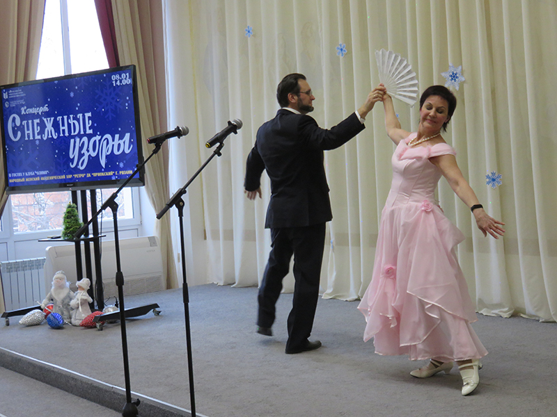Украсили программу танцевальные композиции «Дед Мороз и Снегурочка», «Розовый вальс» в исполнении Татьяны Петровичевой с партнерами Владимиром Плотниковым и Вячеславом Шишовым.