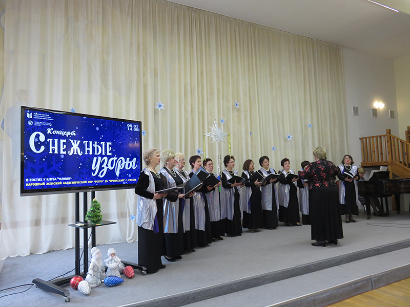 Вот и наступили любимые зимние праздники – Новый год и Рождество Христово, которые мы так ждали и были преисполнены самых светлых надежд! В эти чудесные дни и природа порадовала нас настоящей зимой с ее пушистым снегом, трескучим морозом, сказочными пейзажами, ледяными узорами. В клубе «ОЛИМП», по сложившейся традиции, начало очередного календарного года было отмечено праздничной концертной программой «Снежные узоры», составленной из музыкальных композиций зимней и рождественской тематики.