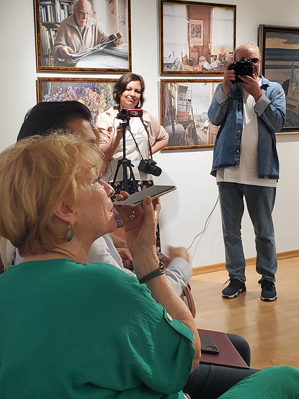Рауль Юрьевич Скрылев поблагодарил Наталью Николаевну Гришину, Сергея Алексеевича Кочеткова и Марину Михайловну Ершову за возможность вновь увидеть экспозицию выставки «В кругу друзей». «В выставочном зале музея она стала более камерной», – сказал Рауль Юрьевич. Он подчеркнул, что главная задача его фотографий – раскрыть характер художника и показать процесс титанического труда, в результате которого рождаются бессмертные произведения искусства.