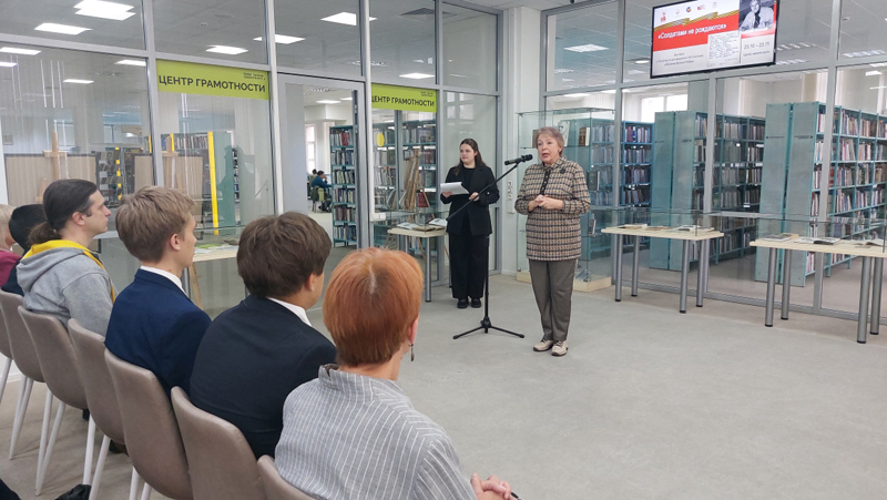 С приветственным словом к гостям обратилась заместитель директора библиотеки по социокультурной деятельности и связям с общественностью Юлия Александровна Косьяненко. Она отметила, что поэзия Константина Симонова не утратила своей актуальности в наши дни, а самое его знаменитое стихотворение «Жди меня, и я вернусь», написанное в 1941 году, вселяет веру и надежду в тех, кто сегодня ждет возвращения наших бойцов домой.