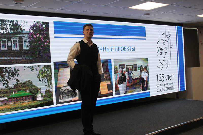 Отдельная программа состоится на родине С.А. Есенина, там пройдет несколько фестивалей – джаза, изобразительного искусства, поэзии; будет широко отпразднован день рождения поэта. Участников презентации пригласили на Всероссийский есенинский праздник, который состоится 3 октября в Константинове. Сотрудники музея подготовили мобильные выставки: тематические экспозиции отправятся в Москву, Париж, Баку, Сухум, Ташкент, Анадырь, Южно-Сахалинск, Магадан.