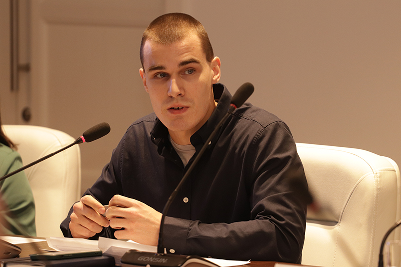 Ученый секретарь библиотеки, кандидат педагогических наук Александр Александрович Селиванов доложил об утверждении нового состава Общественного совета на 2023 год и представил самого молодого участника заседания – Юрия Пинигина, волонтера, члена Общественной палаты города Рязани, магистранта факультета социологии и управления РГУ имени С.А. Есенина. Юрий совсем недавно, 22 декабря 2022 года, участвовал в работе Государственного совета по вопросам реализации молодежной политики. Он поделился своими впечатлениями: «Мне выпала поистине уникальная возможность выступить перед Президентом и всем руководством страны, рассказать о волонтерской помощи в Рязанской области. Я озвучил предложение о повышенной стипендии за общественную работу для студентов, которые хорошо учатся и при этом приносят общественную пользу людям, своему городу, вузу и всей нашей стране».