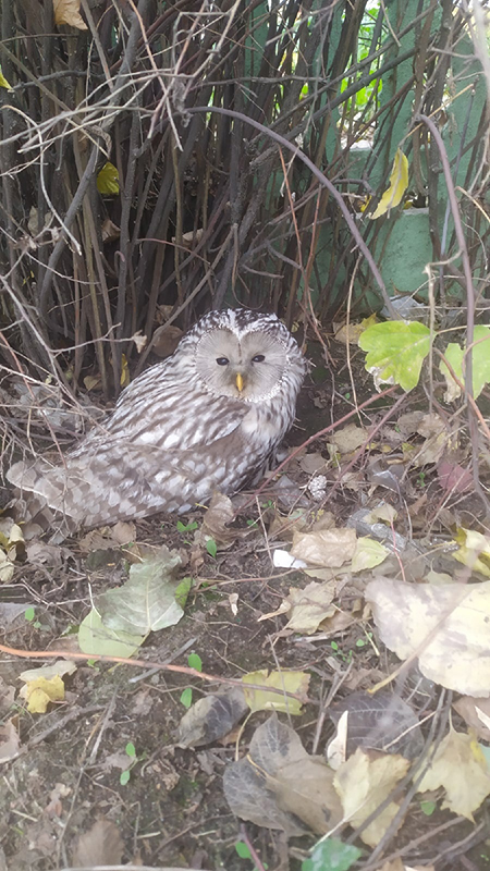 Длиннохвостая, или уральская неясыть – крупная сова. Её длина достигает 70 см, размах крыльев около 115 см, причем длина хвоста действительно не маленькая – 30 см. Даже ослабленную особь невозможно поймать и транспортировать, не имея коробки и, желательно, помощников. Действовать требовалось быстро. Члены клуба «Птицы» связались с сотрудниками Горьковки, и уже через десять минут Алена Палачева, библиотекарь отдела молодежных проектов и волонтерской деятельности, смогла найти большую картонную коробку для транспортировки, срочно выехала на место и помогла орнитологу поймать птицу.