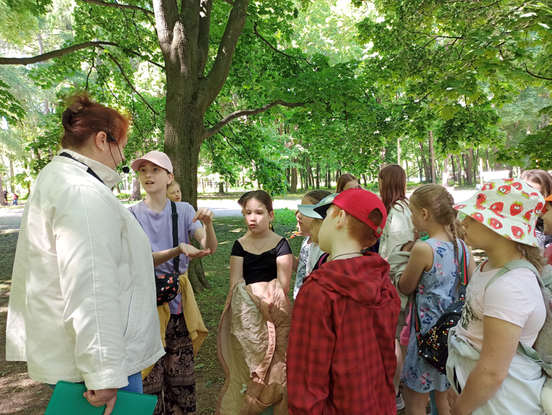 Сотрудники библиотеки имени Горького провели экскурсию «Легенды и были Рюминой рощи» для детей из летнего лагеря школы №1