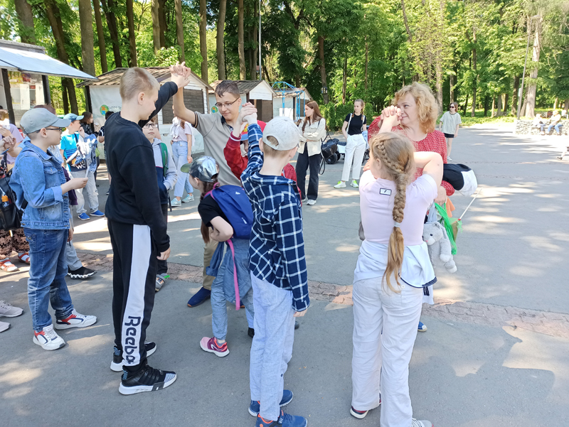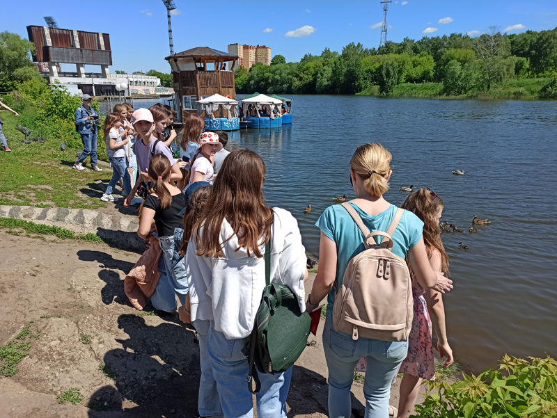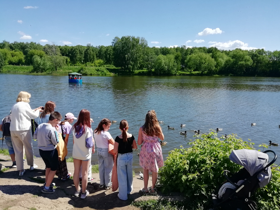 Сегодня сотрудники библиотеки имени Горького провели экскурсию для ребят из школьного лагеря. Дети познакомились с историей парка, прошли по его аллеям, послушали пение птиц, покормили уток, а также измерили, сколько человек может обхватить ствол многолетнего дуба. Выдалась у ребят и свободная минутка для отдыха, когда они смогли поиграть в активные игры и перекусить.
