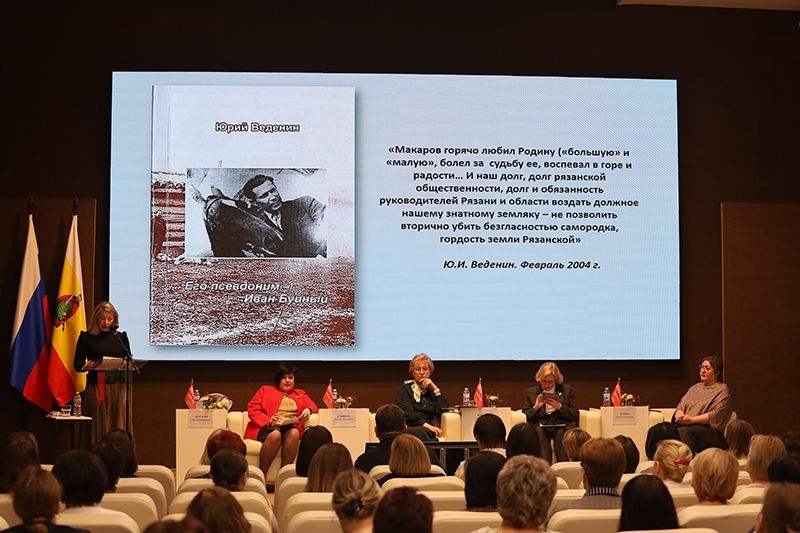 Виктория Игоревна Лотарева, директор Ряжской центральной библиотеки имени И.И. Макарова Ряжского муниципального округа Рязанской области, Мария Юрьевна Мякова, директор Центральной районной библиотеки имени Б.А. Можаева Пителинского муниципального округа Рязанской области, Лариса Анатольевна Герасимова, заведующая Центральной детской библиотекой имени А.В. Ганзен Касимовского муниципального округа Рязанской области, поделились опытом организации работы по изучению и сохранению культурного наследия, связанного с жизнью и творчеством выдающихся деятелей региона, чьи имена носят библиотеки.