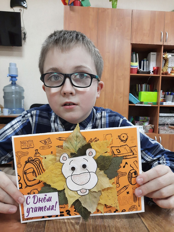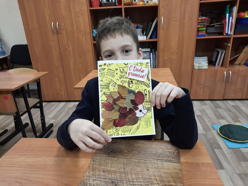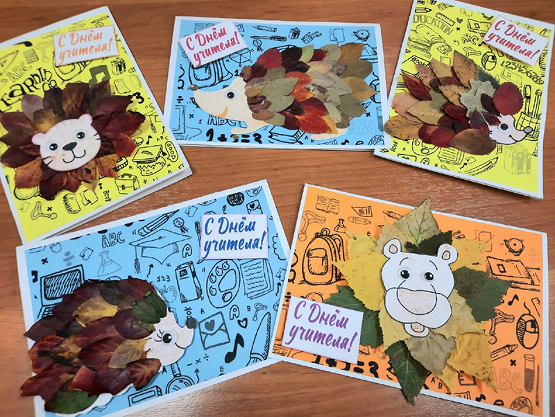 Трудная работа не испугала юных мастеров, все открытки получились очень яркими и красивыми. Надеемся, что осеннее тепло, исходящее от маленьких шедевров, понравится всем учителям и будет долго греть души педагогов интерната.