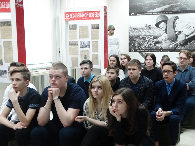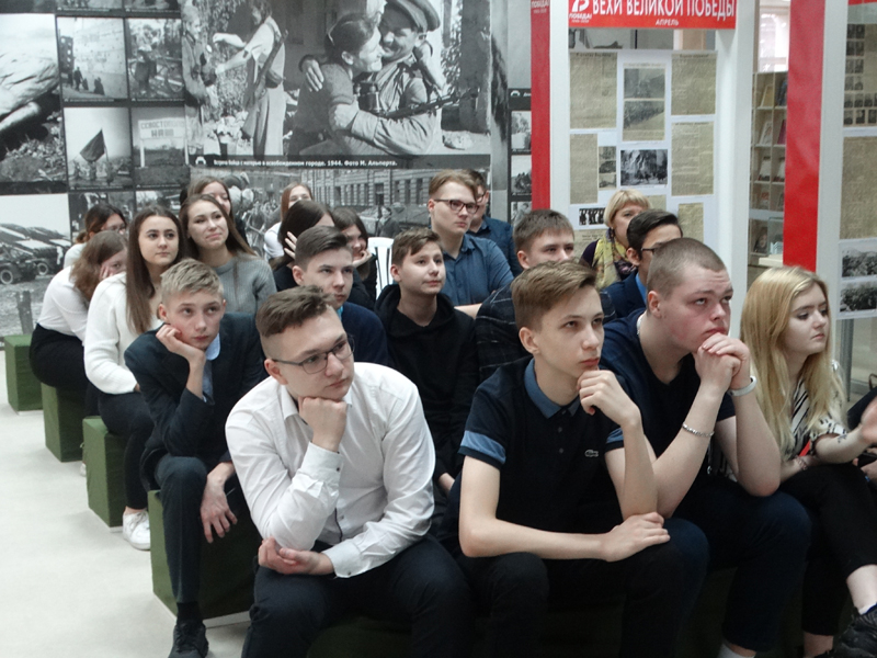 Ребята посмотрели кадры документальной хроники военных лет и отрывки из художественных фильмов. В конце мероприятия они почтили память павших минутой молчания.