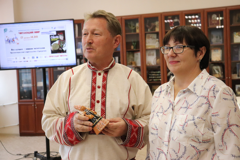 Юрий Васильевич поблагодарил библиотеку имени Горького за теплый прием, выразил надежду на дальнейшее сотрудничество и подарил памятные удмуртские национальные сувениры.