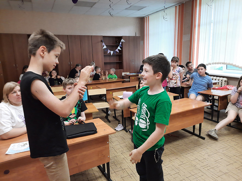 Девчонки и мальчишки с удовольствием попробовали играть с резиночкой и скакалкой, освоили новый вид игры «Съедобное-несъедобное», узнали, как тренируется мозг во время игр с мячом, посмотрели видеофрагменты из старых советских фильмов, где показаны разные дворовые игры.