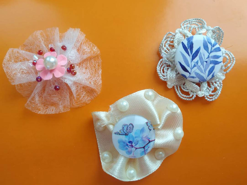 Участницы мастерской создавали свои цветы из самых различных материалов, потребовалось лишь доля терпения, фантазия и желание творить красоту. Посмотрите на фото и убедитесь сами, сколько труда и таланта потребовалось для создания этих маленьких и стильных украшений!