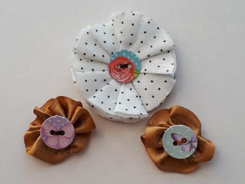 Цветы из ткани очень часто используются в скрапбукинге для придания работе нежности, объёма и индивидуальности. Особенно часто рукодельницы украшают такими цветами обложки своих альбомов.