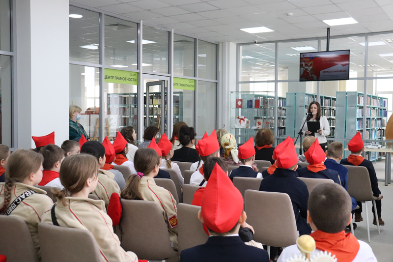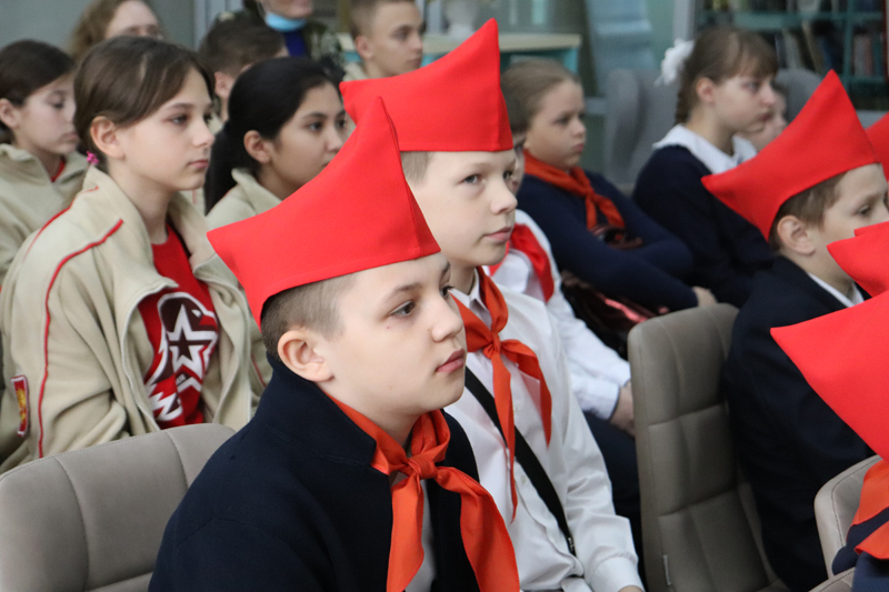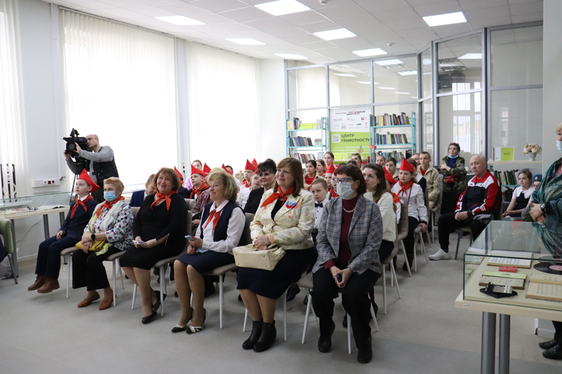 На открытии выставки присутствовали учащиеся школы №36, ставшие вчера пионерами, воспитанники регионального отделения Всероссийского детско-юношеского военно-патриотического общественного движения «Юнармия»,читатели и друзья библиотеки.