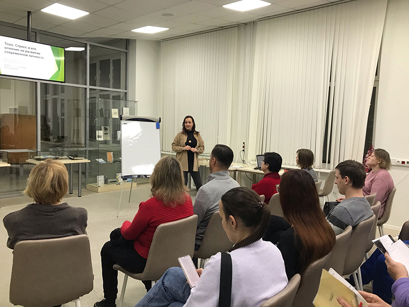 В библиотеке имени Горького 21 ноября прошла очередная встреча в рамках социального проекта – цикла интерактивных лекций «Психологическая поддержка семьи в условиях повышенной напряженности, мировой нестабильности и перемен». Лекцию «Стресс и его влияние на развитие современной личности. Стресс менеджмент» прочитала психолог, семейный психолог, гештальт-консультант, психодраматист Любовь Лавренева.