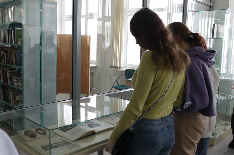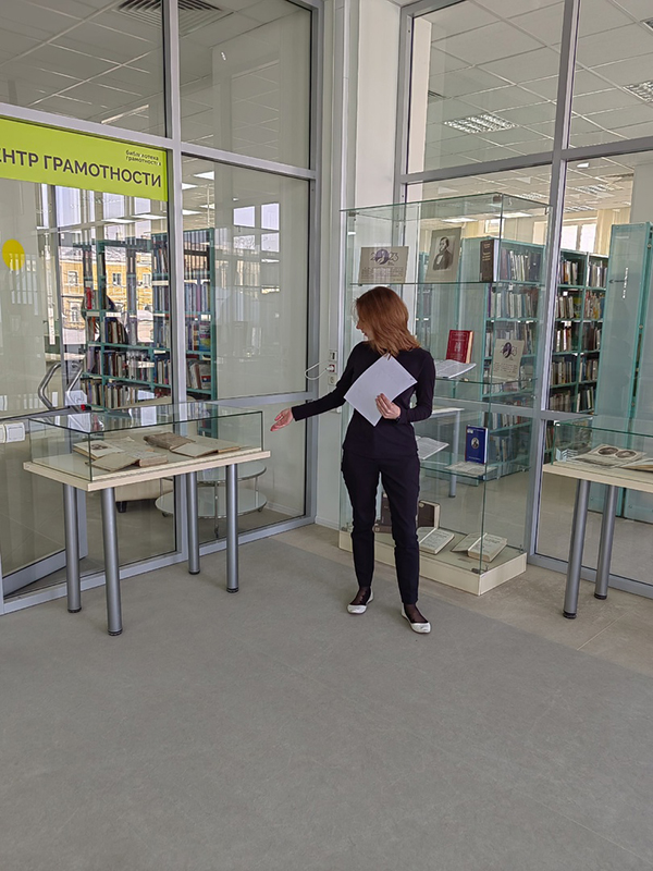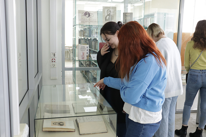 Познакомиться с выставкой сегодня пришли студенты Рязанского политехнического колледжа. Заведующая центром грамотности Екатерина Сараева рассказала о жизни и деятельности великого педагога, опираясь на документы, фотографии, издания, размещенные в выставочных витринах.