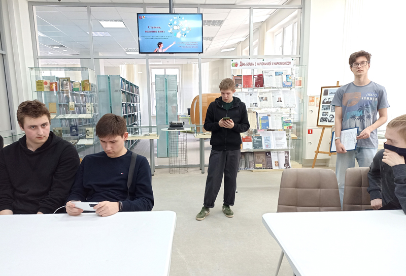 На встрече в библиотеке медицинский психолог Рязанского областного клинического наркологического диспансера Алексей Викторович Кравченко предложил командам студентов поучаствовать в игре, в ходе которой необходимо было разобраться в предложенной ситуации и принять верное решение. Первокурсники выступили в роли юристов, сценаристов и журналистов.