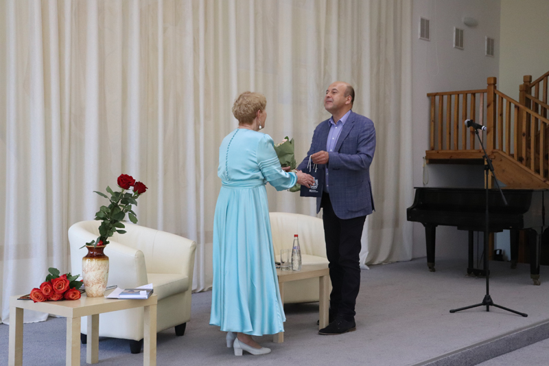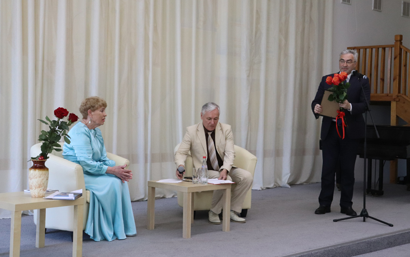 С приветственным словом выступил министр культуры Рязанской области Виталий Попов. Он тепло поздравил Раису Николаевну с юбилеем, и поблагодарил её за большой вклад в развитие литературы в нашем регионе и высокую ноту патриотизма в творчестве. По словам Виталия Юрьевича, Раиса Купавская свято хранит традиции русской прозы и поэзии, основанные на идеалах нравственности.