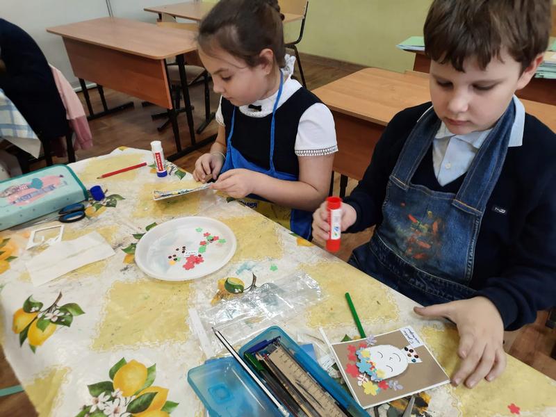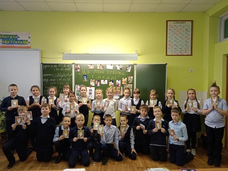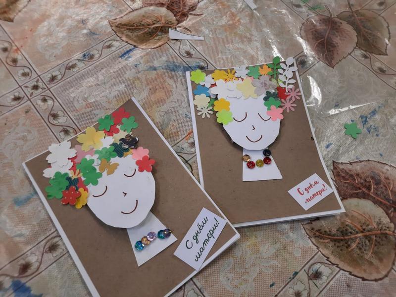 На открытке мальчишки и девчонки изобразили условный портрет матери, украсили его цветами, листьями из бумаги, блестящими пайетками. Каждый старался, чтобы его работа была самая красивая, ведь скоро этими открытками они поздравят самых близких людей на свете. Во время занятия ребята похвалились фотографиями с любимыми мамочками и пообещали почаще дарить им приятные слова и подарки.
