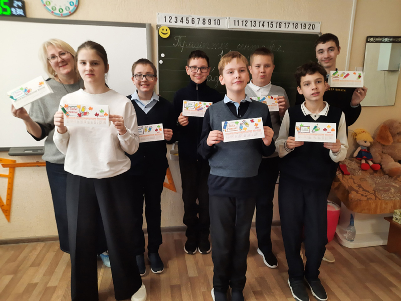Не секрет, что рабочая нагрузка у учителя очень большая. Организовать рабочий процесс, запланировать занятия и мероприятия, не пропустить важную дату поможет настольный календарь. Именно такой подарок приготовили своими руками мальчишки и девчонки. Свои работы они украсили тематическими вырезками и стразами.