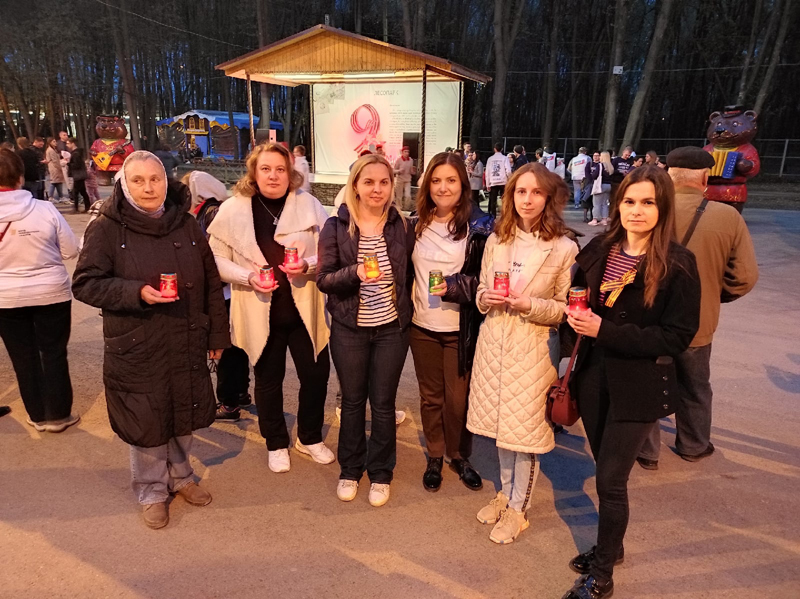 Накануне 77-й годовщины Великой Победы в Лесопарке прошла патриотическая акция «Свеча Победы», в рамках которой более 300 рязанцев выложили слово «ПОБЕДА» из горящих лампадок. К акции присоединились сотрудники Библиотеки им. Горького.