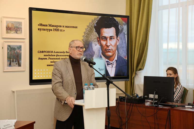 Александр Викторович Сафронов, кандидат филологических наук, доцент Рязанского государственного университета имени С. А. Есенина, осветил вопросы влияния массовой культуры 1920-х годов на прозу Ивана Макарова и подчеркнул публицистическую остроту его языка.