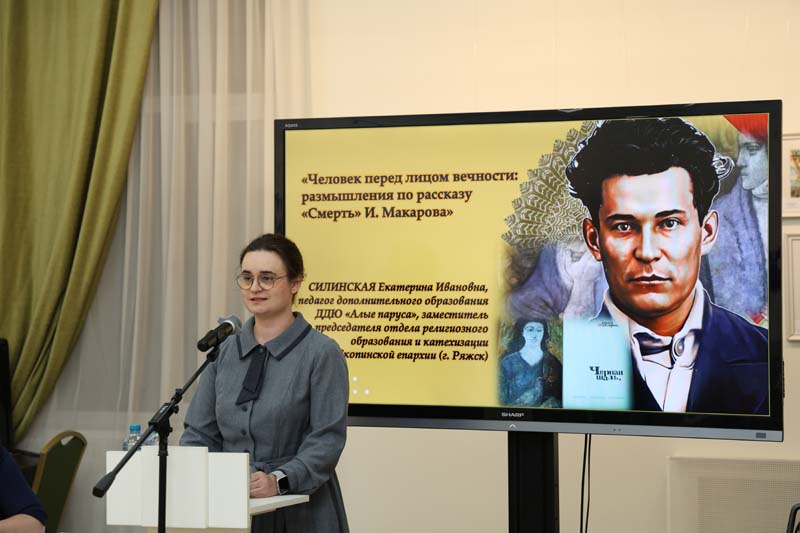Екатерина Ивановна Силинская, педагог дополнительного образования ДДЮ «Алые паруса», заместитель председателя отдела религиозного образования и катехизации Скопинской епархии, в своём выступлении обратилась к рассказу «Смерть», рассматривая его как размышление о человеке перед лицом вечности.