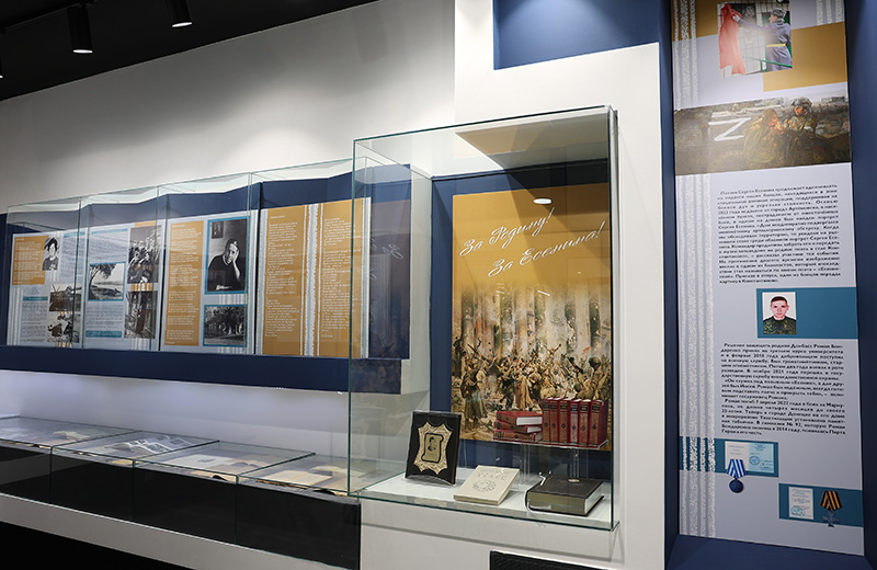 Выставочный проект реализован благодаря неоценимой помощи члена Комиссии по культуре и сохранению духовного наследия Общественной палаты Российской Федерации, ведущего российского есениноведа, профессора Рязанского государственного университета имени С.А. Есенина, доктора филологических наук, главного редактора журналов «Современное есениноведение» и «Есенинский вестник», члена Союза писателей России Ольги Ефимовны Вороновой. Структура выставки разработана в соответствии с ее исследованиями на тему «Фронтовая Есениниана». В своем выступлении Ольга Ефимовна привела реальные примеры того, как поэзия Есенина помогала нашим солдатам выстоять во время Великой Отечественной войны и как продолжает вдохновлять на подвиги бойцов во время специальной военной операции.