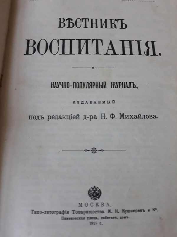 Сентябрь – самое время продолжить разговор об образовании, воспитании и преподавании. В этом году исполнилось 130 лет «Вестнику воспитания», одному из лучших дореволюционных педагогических журналов России. Он издавался в Москве с 1890 по 1917 года (до 1901 по 8 номеров в год, далее по 9).
