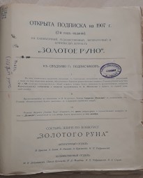 В Центре редких и ценных изданий библиотеки имени Горького хранятся отдельные номера журнала «Золотое Руно» за 1906 г. (№№5-6, №№10-12).