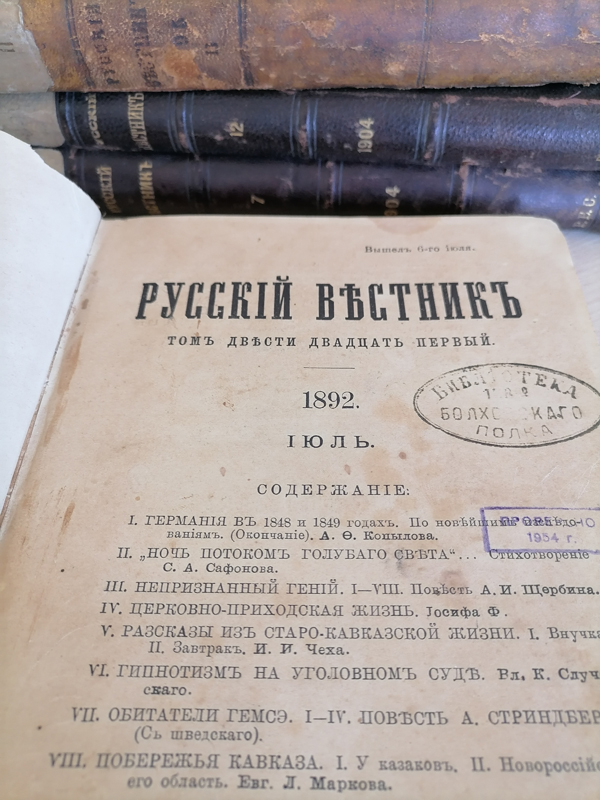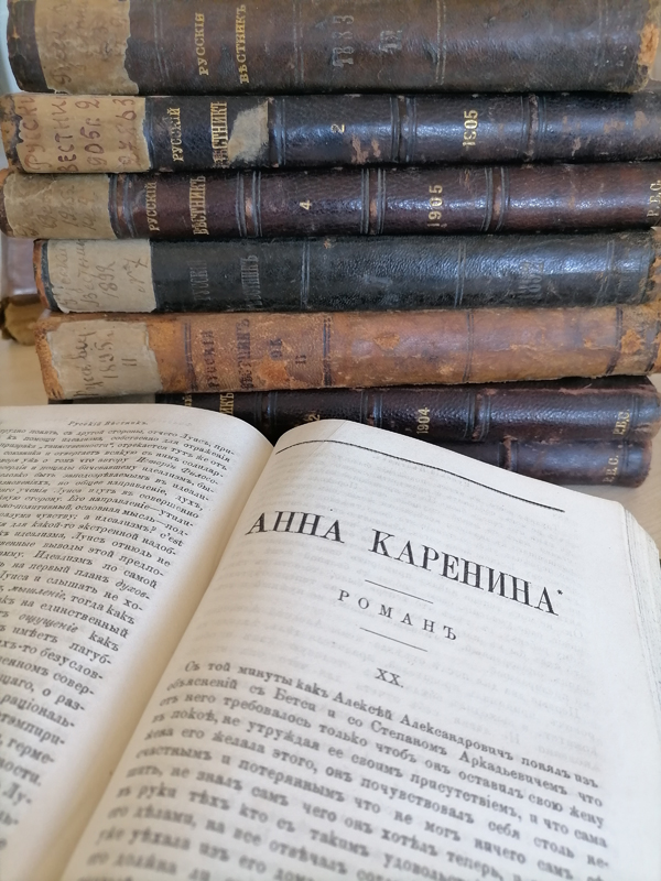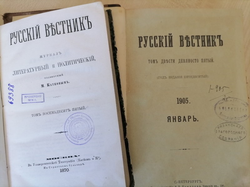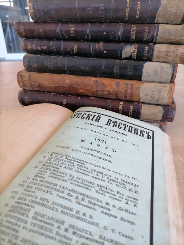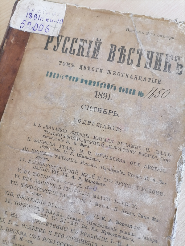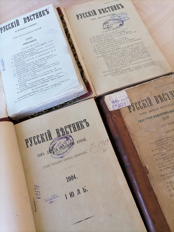 В библиотеке имени Горького хранятся номера журналов с 1860 по 1905 гг. К сожалению, до нас дошли не все полные годовые комплекты, а ряд годов полностью отсутствует. Но если вы хотите подержать в руках первые публикации «Преступления и наказания», «Бесов», «Анны Карениной» и других произведений, мы приглашаем вас в центр редких и ценных изданий.
