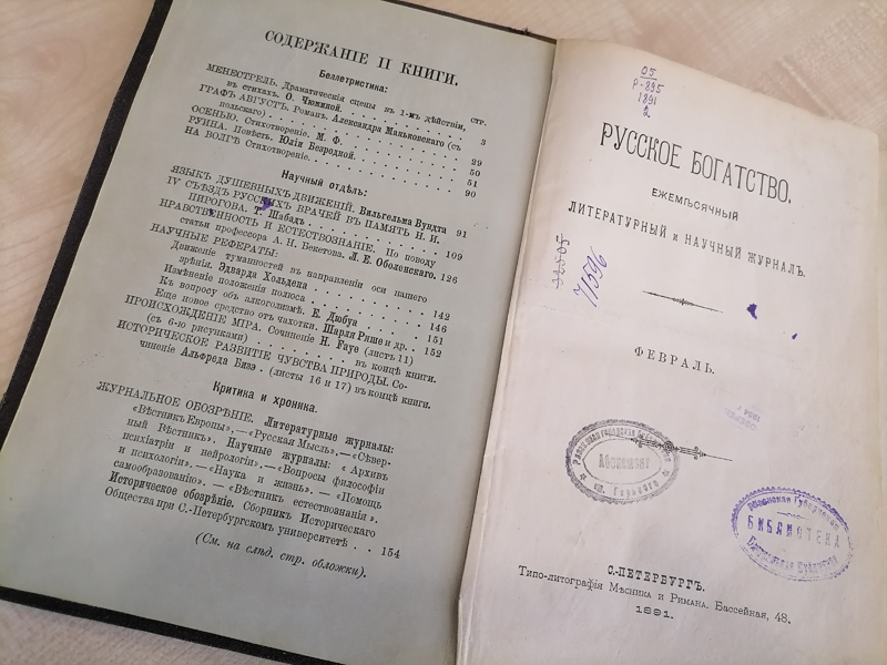 Сегодня в нашей рубрике, посвященной дореволюционной периодике, мы расскажем вам о журнале, бывшем на протяжении почти сорока лет самым популярным изданием Российской империи. Это «Русское богатство» – один из ведущих либеральных журналов второй половины XIX в., отразивший в своей истории сложный и противоречивый путь развития русской общественной мысли в конце XIX – начале XX в.