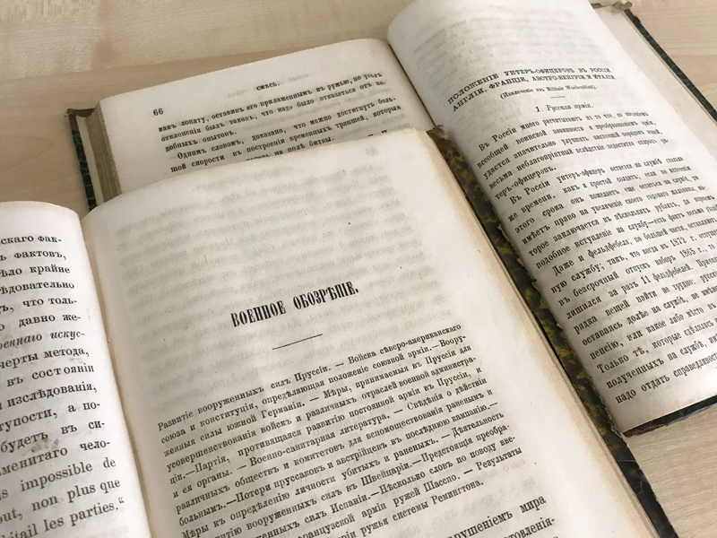 Рубрика «Военное обозрение», существовавшая в журнале до 1868 года, знакомила читателей с иностранными новостями касательно вооруженных сил и военных кампаний государств, образования солдат и офицеров, деятельности различных обществ и комитетов для помощи раненым и больным, санитарной литературы. К каждой книжке на раскладных листах прикладывались чертежи и схемы оружия и других объектов, связанных с оружейным делом, как отдельный иллюстративный материал к статьям.