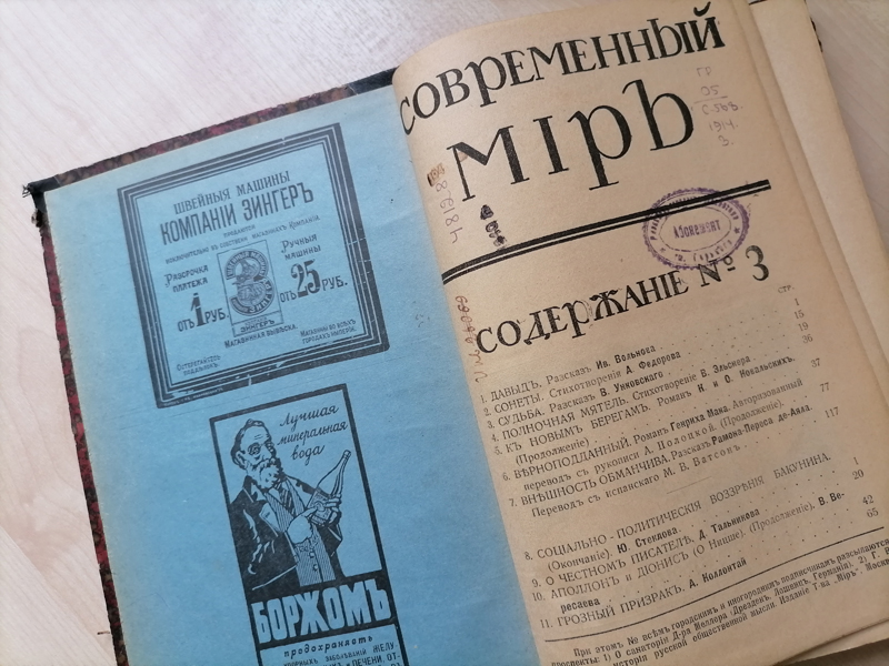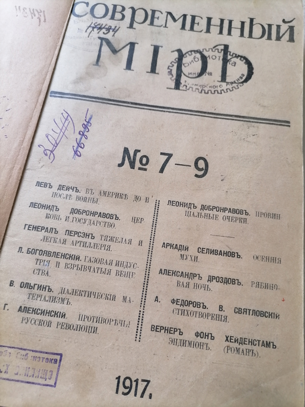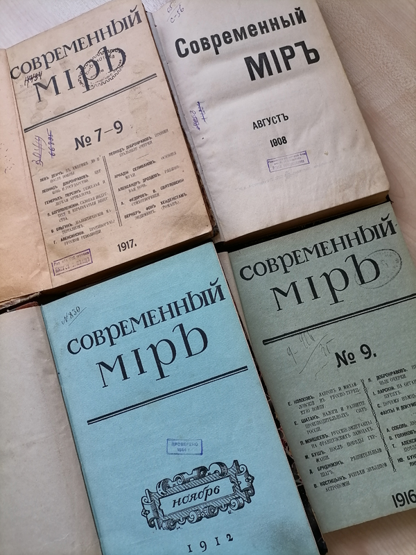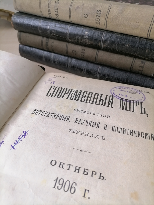 В фонде центра редких и ценных изданий хранятся номера «Современного мира» за все время его издания, но не все годовые комплекты сохранились полностью. Прикоснуться к его страницам, к истории нашей страны периода революций и политической борьбы вы можете в нашем центре. Этот журнал по праву можно назвать свидетелем времени!