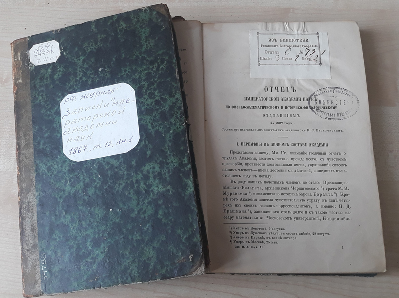 В центре редких и ценных изданий библиотеки имени Горького хранятся отдельные тома «Записок», выходившие с 1867 по 1894 год. Уникальность книгам придает экслибрис библиотеки Рязанского благородного собрания, считавшейся лучшей по подбору литературы и крупнейшей среди клубных библиотек Рязани конца XIX – начала XX века.