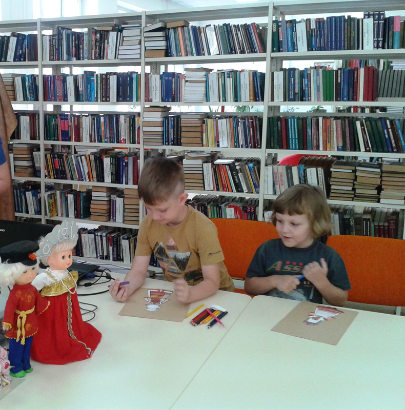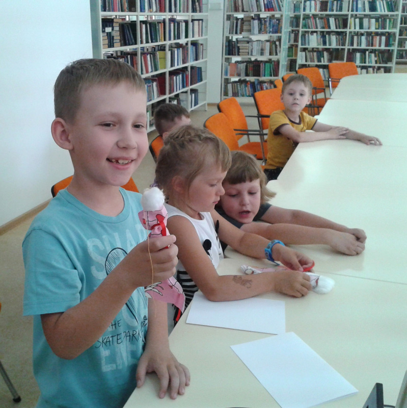 Юные зрители побывали в кукольном библиотечном театре, где встретились с бабушкой-рассказушкой и ученым котом, а потом участвовали в конкурсах «Что забыл нарисовать художник», «Сделай куклу сам», «Разные куклы». Дети с удовольствием смастерили народную игровую куклу «Зайчик на пальчик», которая станет ребенку не просто игрушкой, но другом и оберегом.