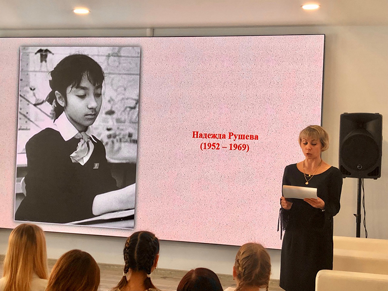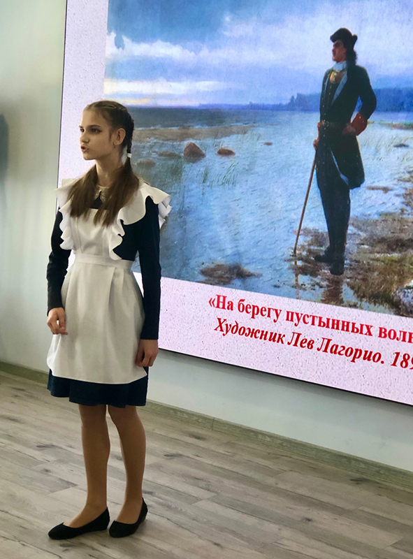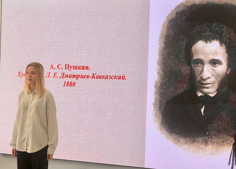 Личность и творчество А.С. Пушкина всегда привлекали пристальное внимание мастеров изобразительного искусства. Студенты услышали рассказ о замечательной юной художнице Наде Рушевой. Прожив всего 17 лет, Надя оставила свыше 10 000 рисунков-фантазий, из них более 400 рисунков серии «Пушкиниана», которые являются вершиной ее творчества. Значительная часть художественного наследия Нади Рушевой хранится в Государственном музее А. С. Пушкина.