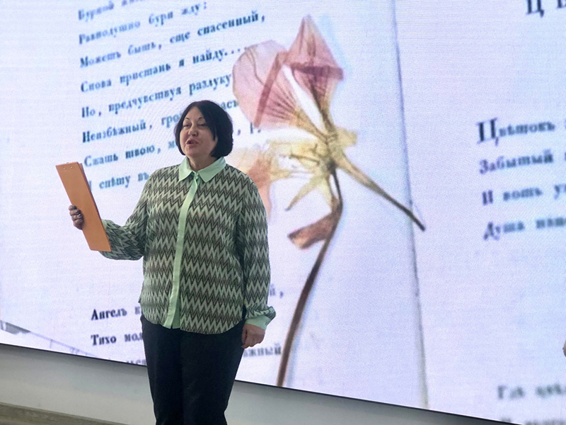Сотрудники библиотеки рассказали о жизни и творчестве Александра Сергеевича. Студенты увидели фрагменты из документальных и художественных фильмов, услышали романсы, арии из опер по произведениям А.С. Пушкина «Пиковая дама», «Евгений Онегин». На сцене прозвучали стихи поэта в исполнении воспитанников Центра эстетического воспитания детей.