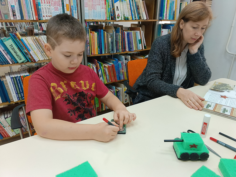В клубе выходного дня «Домовёнок» ребята учатся мастерить поделки своими руками. Сегодня, в рамках презентации культурно-просветительских проектов «Для семьи, для страны, для будущего», участники клуба создали из губки необычную объёмную поделку — танк Победы. Работа с новыми материалами и инструментами помогает детям раскрывать творческий потенциал, становиться более усидчивыми, внимательными и аккуратными.