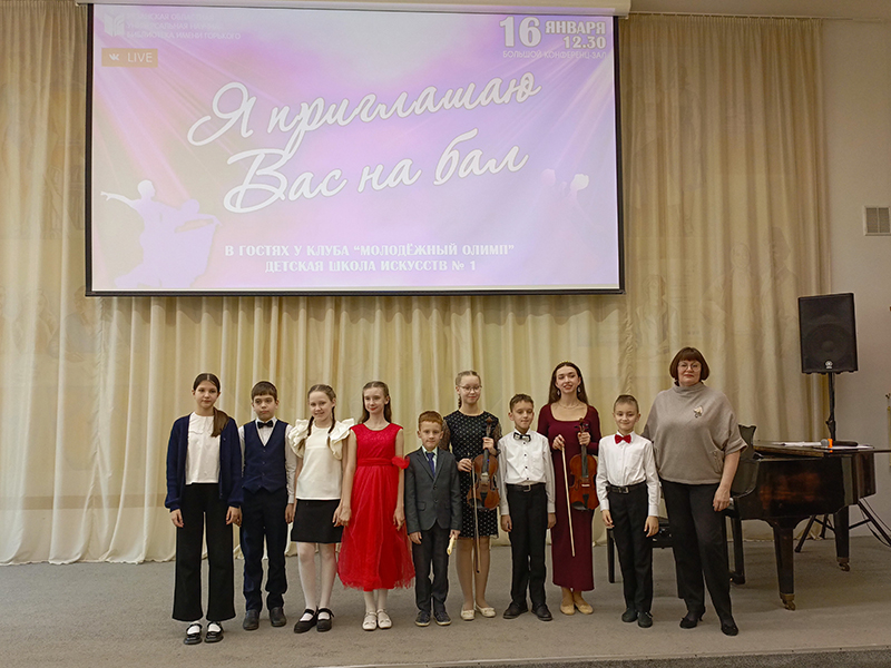 16 января в молодёжной секции клуба «ОЛИМП» состоялась лекция-концерт «Я приглашаю Вас на бал». Ее подготовили и провели наши добрые друзья и партнеры - преподаватели и ученики Детской школы искусств № 1 г. Рязани. Зрителями мероприятия стали учащиеся начальных классов школ № 6 и №36.