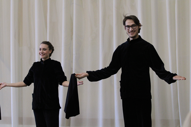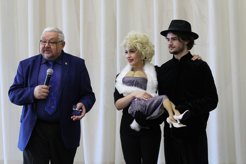 Худрук театра кукол не мог прийти на встречу без своих друзей – кукол и артистов. Актёры Екатерина Филиппова и Олег Царёв показали любопытную миниатюру «Мэрилин Монро», в которой участвует интересный симбиоз куклы и человека. А Антонина и Александр Григорьевы представили изумительный пластический танец рук, который сорвал шквал аплодисментов.
