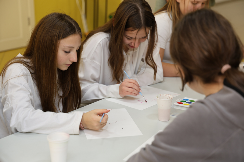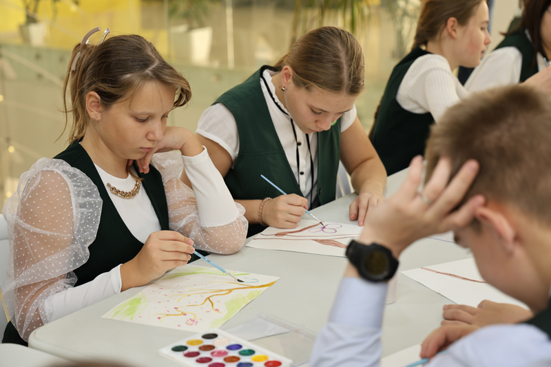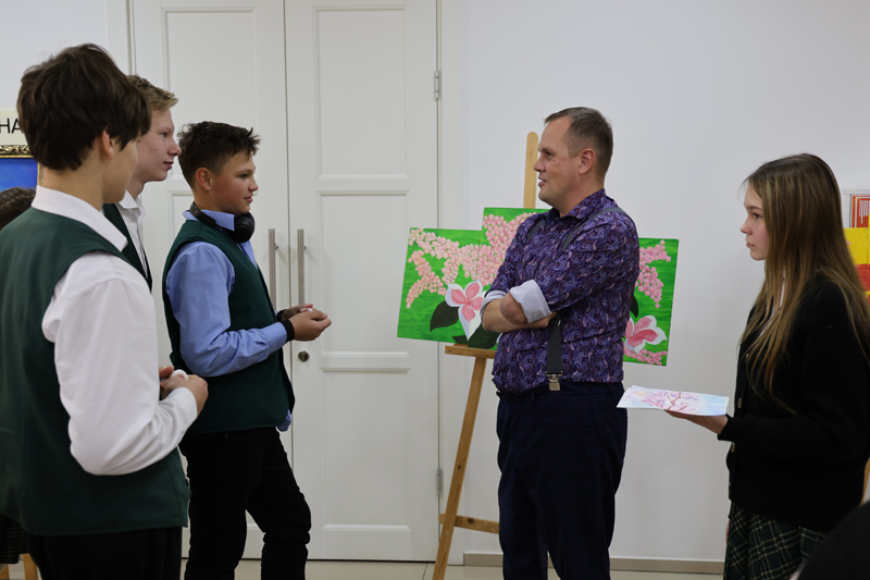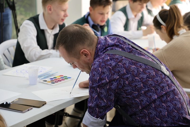Евгений Викторович предложил школьникам нарисовать свою ветвь жизни. Стоит отметить, что именно с работы «Ветвь жизни» и началось творчество художника.